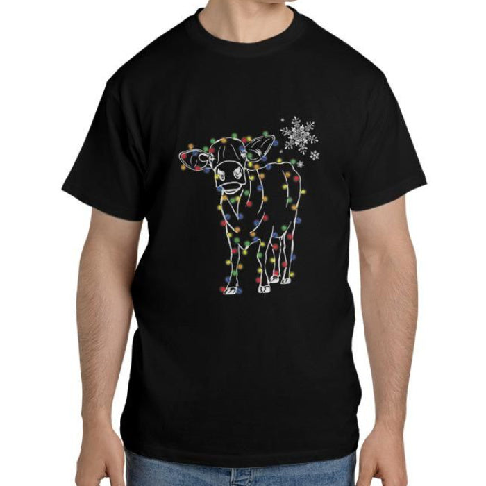 • European And American-made Cow Christmas Printed Casual Round Neck T-shirt