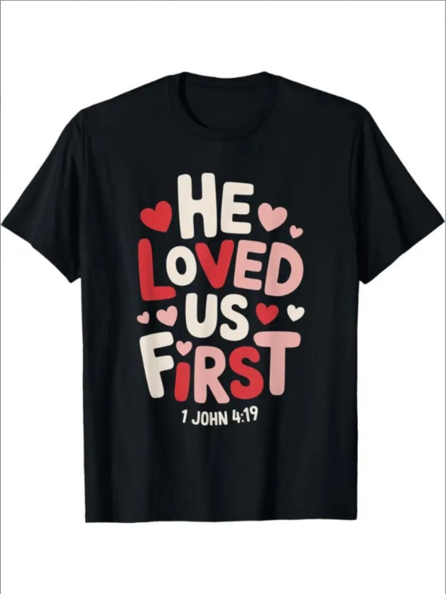 • HE LOVED US FIRST Love Valentine'S Day Short-Sleeved T-Shirt